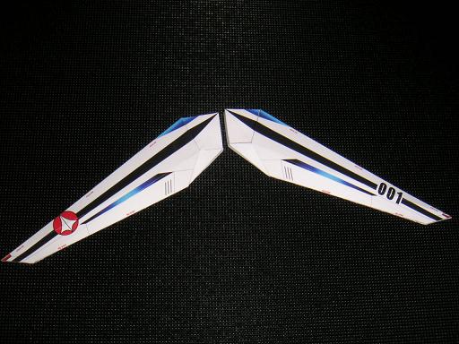 ちわぴ~ん^^ 本日はいよいよ「主翼」を付けるですよ! 最初に断っておきます。若干デカ過ぎる気もするだろうが、気にせずいこうーw いつものようにこーんな感じのパーツ分割。 今回は楽勝だね♪ 上方に向かってちょいっと角度が付くはずです。 機体につける前に確認してチョ^^ はい。ここまで来ると、機体全体の大きさが明らかにっ!! A4用紙を下に敷いてみたので比較してくださいな^^ デカイねw バカだねw でもいいねww スタンドに乗せて、いつもの俯瞰でパチリ! それっぽくなってきましたねー♪ もう少しで完成だ!がんばるまー>w</ というわけで次回はいよいよ最終段階に入るデスぞー! (って、後2回はやるけどねw) 次は加速時に展開される「加速ノズル」ちゅうの?なんちゅうの?なアレを作ることにしましょう^^ 同じもの、同じ工程を繰り返すのが苦手な団長は、かなりこの部分の製作に入ることを躊躇しておりますw 嫌になってしまっては楽しくないので、みんなもゆっくりひとつずつ進めてみてね♪ ではまたにーノシ