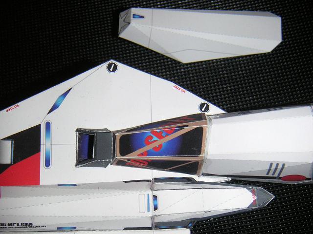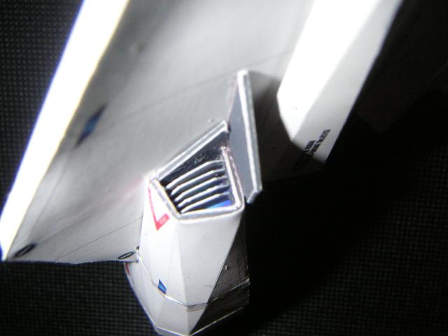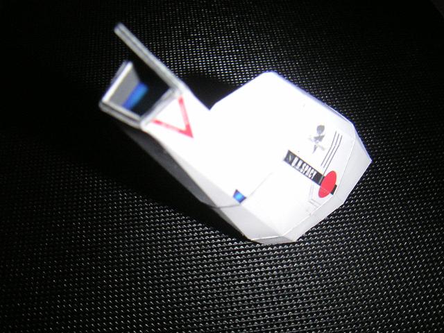 ばんちゃー♪ さて今日はいよいよ「メインエンジン」?を搭載しちゃうぞ! 多分ここが最大の山場なので頑張ってチョ!! パーツ分割は大体こんな感じー。 ディテールアップの為に、もうチョッと細かいです。。。 で、細かくて嫌になる作業の連続になるかも知れんので、こーんな感じにひとつずつ作っていってみてくださいな^^ あ、ここで紙の厚さ分の誤差が出るので、後方~下方~上部~カバーと言う感じで本体に付けていくと誤差のズレが隠せますw 後ろのデカイのと、下側インテークをくっつけて・・・ こんなにズレルですよww カバーで隠しちゃおう!! そして、このエンジン部分最大のウリは・・・エンジンカバー! (ズレ隠しとも言うwww) このショボギミックはメインエンジン内部を見ることが出来るって言う設定でやんす。 今回は「TOP SECRET」にしてあるが(内部を描くの面倒だったからw)、みんなはナニを載せますかな? 560?I-X?ベース?インタートランス? ^^ これがあるので、カバーをはめる隙間を設けて接着してね♪ ミンメイ人形が隠れてしまった>。< はい!出来あがるとこんな感じですよーん♪ 細かすぎて泣ける><。 全てはディティールアップのためです! ふぁいとー! 皆さんでけたかな?な? 今回のセクションはかなり面倒なので、時間をかけてゆっくりチョコチョコと進めていきましょう^^ さ~て次回は「翼」をつけちゃうぞー! 主翼を付けた後、「なんてデカイんだw」とご満足いただけると確信しておりますww 次回の作業はラクラクだと思うので、気楽に行こう^^ ではまたにーノシ
